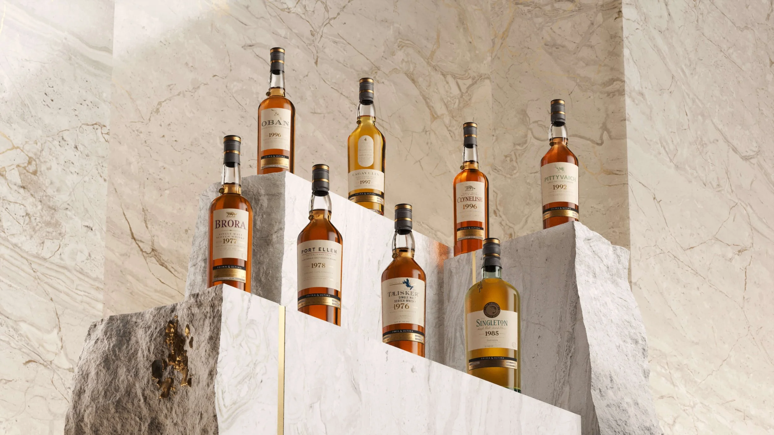 Prima & Ultima is Diageo’s collection of ultra-rare single malts, each release drawn from whiskies that are the first or last of their kind. Working with the wider team at Heart & Feints, I helped generate concepts for several of these collections. The creative themes needed to embody the idea of first and last while also allowing the unique story of each expression to come through.